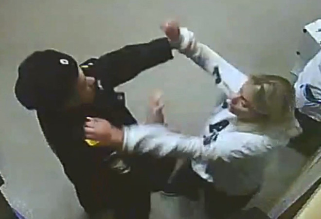 Транспортные полицейские вывели их на станции Смоленск и предложили пройти в дежурную часть. Но прерывать свое путешествие женщины не собирались и начали агрессивное наступление на сотрудников МВД. Одна из них, матерясь, накинулась с кулаками на полицейского, сбила с него видеокамеру.