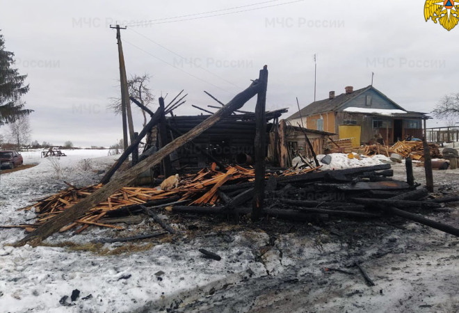 Хозпостройки сгорели, а причины пока неизвестны. Пожар произошел в деревне Княжичи Краснинского района.