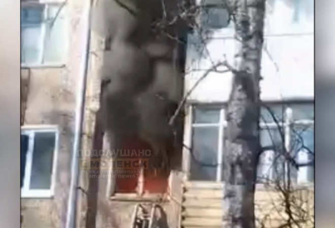 В сети появились кадры пожара, произошедшего на улице Нормандии-Неман в Смоленске.