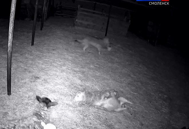 Загоны для животных волки буквально взяли в осаду. Они чувствуют себя как дома, и жилые дома рядом с фермой их совершенно не смущают. На записи видно, как на земле лежит покусанная овца, и тут же с маленьким ягненком в зубах волк выбегает из загона. Только за одну ночь это хозяйство потеряло сразу несколько животных. Зимой атаки участились.