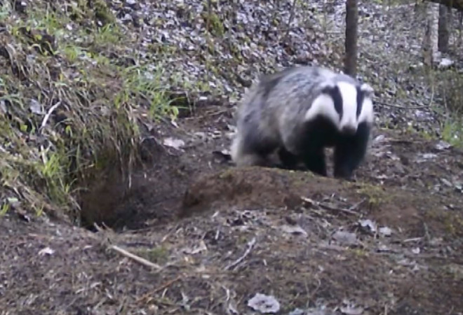 Прибор зафиксировал прогулку медведей, которые вышли на полянку. Нынче медведь не редкое животное в смоленских лесах, но каждая встреча с ним чревата опасностью для человека. А ранее видео нацпарка запечатлело барсуков у норы. Зверь умный и острожный, избегает общества людей.
